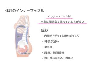 特に女性は妊娠出産にかかわらずインナーマッスルが弱い人がとても多いです。